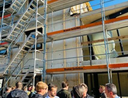 Der geschmückte Baum wurde dabei auf dem Dach aufgestellt und die Zimmerer bedankten sich mit dem Firstspruch bei den Bauherren, Architekten sowie baubeteiligten Unternehmen und wünschten den künftigen Bewohnerinnen und Bewohnern Glück im neuen Heim. Im Anschluss wurde bei Gegrilltem auf den Baufortschritt angestoßen.
