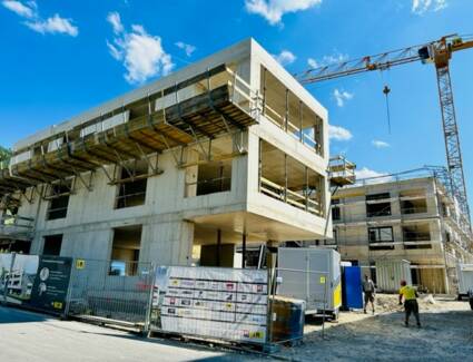 Lochau, 14. Juni 2023 – Eine Firstfeier mit Blick auf den Bodensee bei strahlend blauem Himmel, das ist auch für die i+R Wohnbau etwas Besonderes.